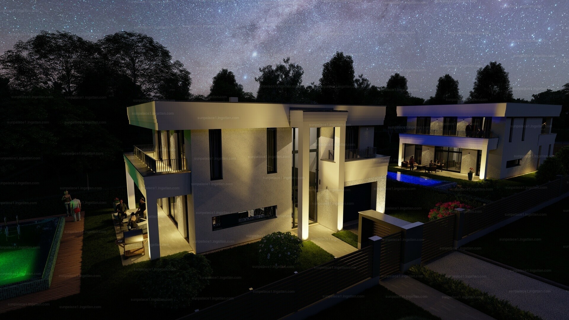 Szőlőliget lakópark keresett részén, közvetlen a tóval szemben, saroktelken eladó egy 188 nm és 192 nm-es két önálló luxus családi ház.